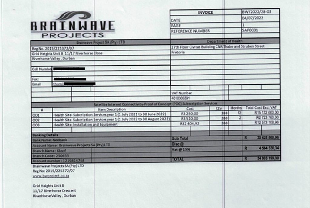 As mentioned, the scramble to appoint Brainwave seemingly followed the NDOH’s failure to obtain authority to pay an invoice for R34.9-million. The invoice came from Brainwave, despite the work having been done by YahClick under the DCDT.